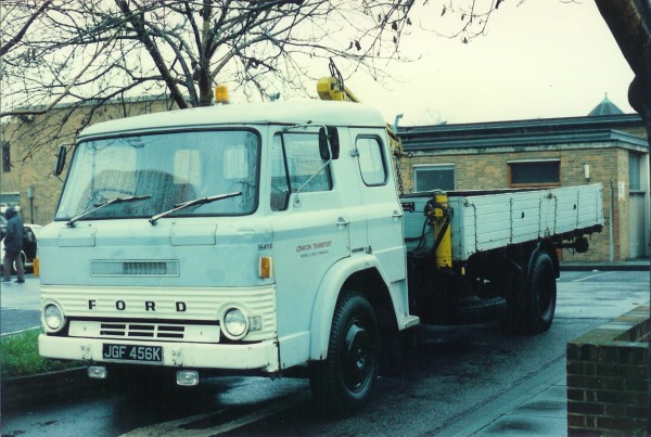 | Details: Ford D600 dropside lorry 1649F (JGF456K) was found at a bus rally in Barking on 7th April 1985. According to records, this truck was sold by London Transport in December 1984, having been new in January 1972 and withdrawn 12 years later. Note the crew cab and yellow-painted HIAB crane and stabilisers. | |||