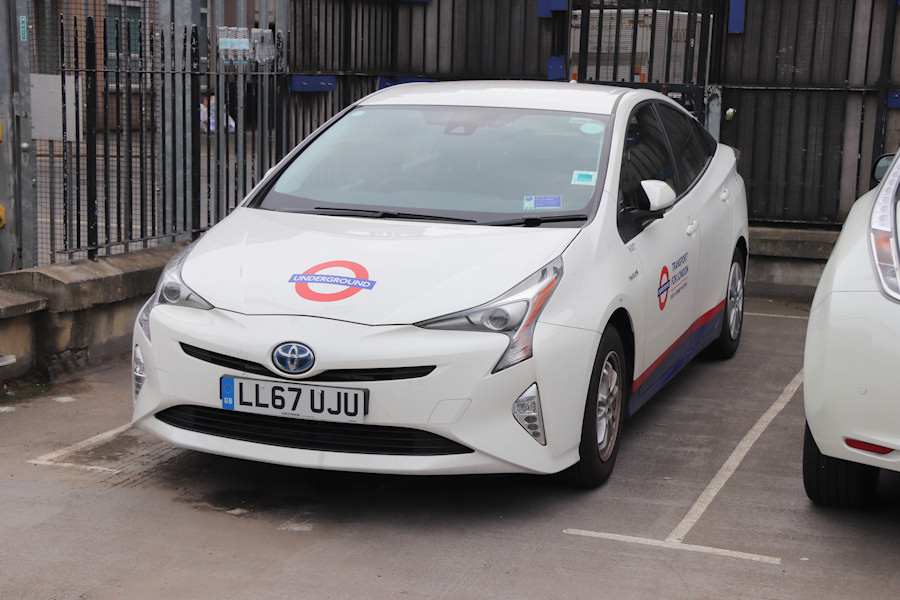 | Details: Toyota Prius car 8630T was thought to be one of several based at Acton Works but it was seen at Edgware Road Station on 31st May 2018. It remains to be seen if this is an allocation. Also, until the number of the Renault Kangoo van shown earlier is known, this is the highest-numbered service vehicle to be shown on LTSV. | ||||