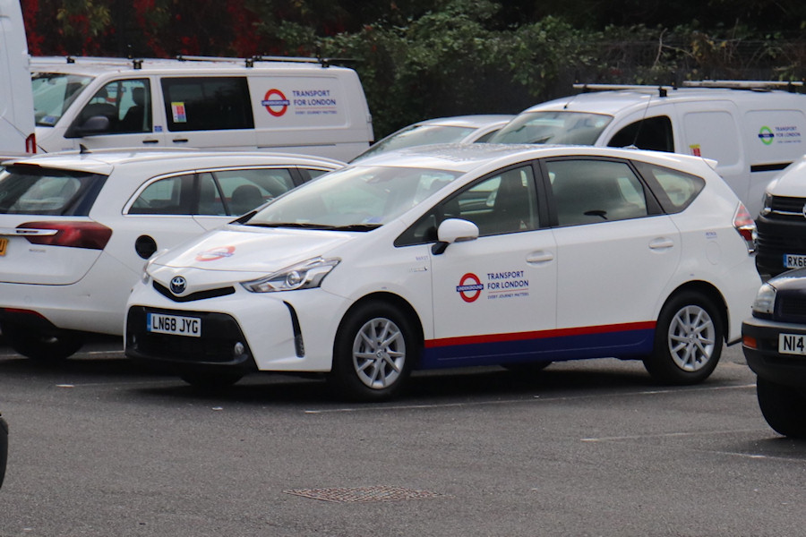 | Details: Seen in the car park at Acton Works on 16th October 2018 was Toyota Prius car 8692T, in LUL white/blue/livery. Over 30 Priuses have been delivered since spring 2017, though this is example is a Prius+ 'estate' version. As with 8567T (the only other Prius+ to date), this variant can be identified by the higher rear-end and also by the black 'tusks' below the headlights. | ||||