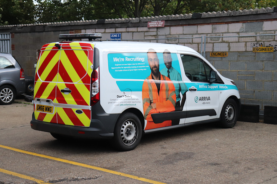 | Details: Arriva Southern Counties took delivery of a batch of Ford Transit Connect vans in spring 2017, five of which were allocated to garages in the area covered by LTSV. I haven't seen photos of all of them yet but it looks like they might all carry this white-based livery with recruitment advertising images. These present a slight problem for LTSV in deciding how to catalogue the livery. I initially put them as White (or the useful but slightly vague 'White+') but I think White/Blue would be more accurate. GM66WWG is allocated fleetnumber V074 (not carried) and is allocated to Harlow Garage, where it was photographed on 9th September 2018. By the way, in case you are confused, the LTSV 'area' is the same as that used by LOTS, ie the traditional (1933-1970) LT area. Of course the 'green' parts, which were LGCS, became LCBS, then LCNE et al before coming under various names. Most are now re-united as part of the large Arriva SC empire. Hope that helps! | ||||