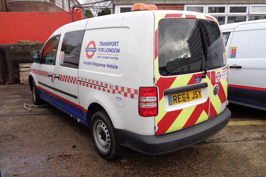 | Details: 7907VW is one of a pair of Volkswagen Caddy Maxi crew vans which serve as Incident Response Vehicles for the Metropolitan Line, and it is normally based at Neasden Depot. Initially it was parked at the north end of the depot and was hard to see, but from autumn 2018 it was more regularly to be seen in the main depot area and hence visible from passing trains. On 18th December 2018 it was in the van yard at Acton Works, its role at Neasden seemingly being covered by similar 7908VW from Rickmansworth. It remains to be seen if its trip to Acton is one way, given that it is now four years old. Parked alongside was another visitor, Ford Transit Connect van 7931F from Hearne House. | ||||