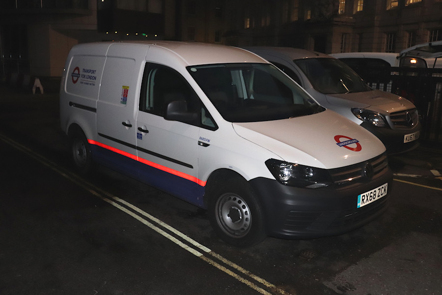 | Details: Another photo taken early on the morning of 16th October 2018 at Allsop Place (Baker Street), shows a second Volkswagen Caddy Maxi van parked outside the LUL offices. As with similar 8477VW, newer 8685VW is also thought to be an internal mail van. | ||||