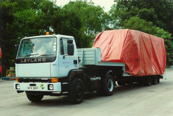 | Details: Service vehicles were sometimes found in unusual locations, as this view of Leyland Cruiser articulated unit 2389L (NYR389Y) taken at Battersea Park on 12th June 1988 shows. The reason for the visit, and the identity of the tarpaulined load, is unknown. | |||