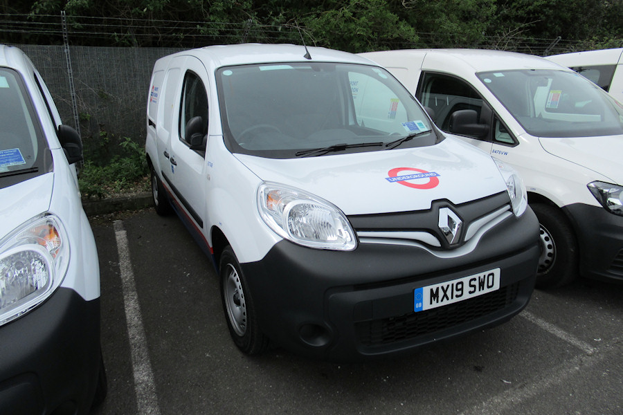 | Details: The deliveries in March/April 2019 were of four main types. Ford Transit Custom crew vans have already been shown, the other three being Renault Kangoo vans, Toyota Yaris cars and Volkswagen Caddy vans. New Renault Kangoo Maxi van 8774R was photographed in the car park of Acton Works on 5th April 2019, sandwiched between similar 8823R on the left and older VW Caddy Maxi van 8478VW. Note the similarity in size and shape between the two different models. | ||||