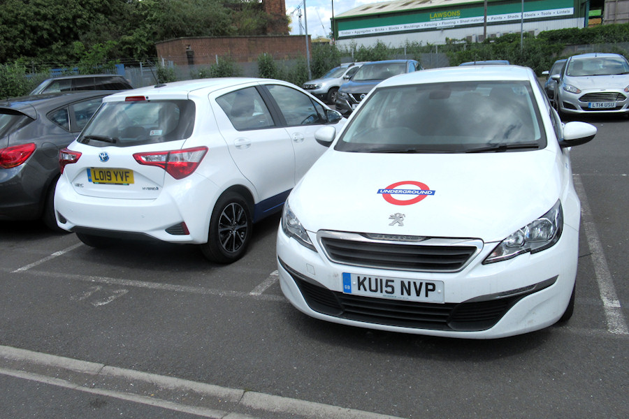 | Details: The car park at Acton Works is interesting because it is used to hold vehicles that are entering and leaving the fleet. Examples of both were seen on 28th May 2019. On the left was newly arrived Toyota Yaris LO19YVF in unmarked white/blue. This later gained TfL lettering and fleetnumber 8895T. On the right is Peugeot 308 estate car 8083P. A batch of sixteen of these cars was leased in summer 2015 (8083P to 8098P), followed by one more at the end of the year (8170P). A few went off-lease in summer 2018, and at least seven followed suit in May/June 2019. Also visible is Ford Fiesta hatchback LT14USU, one of many unmarked cars in the fleet (these are not listed on LTSV). | |||||