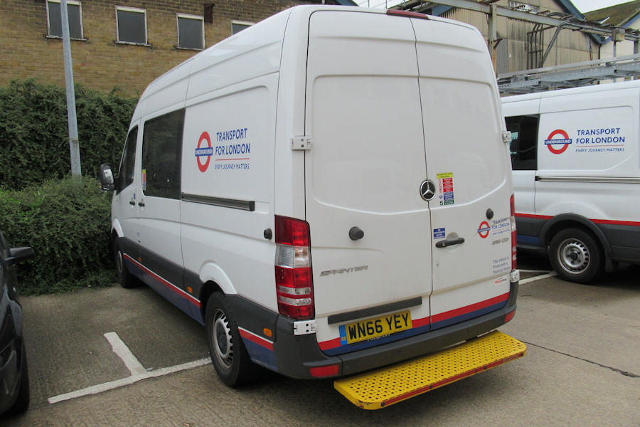 | Details: Two Mercedes Sprinter crew vans were delivered in November 2016 for use by LUL. Although they had consecutive registration numbers, they were given fleetnumbers 8255M and 8257M. Curiously the numbers 8256 and 8258 were then applied to a pair of VW Transporter minibuses new the following month. Anyway, of the Sprinters, 8257M has appeared on LTSV three times already, so it is time to show 8255M. Ray did the honours, on a visit to Acton Works on 25th June 2019. The allocations of the two Mercedes are a bit hard to pin down. 8255M was at Lillie Bridge for a while, then at Arnos Grove. | ||||