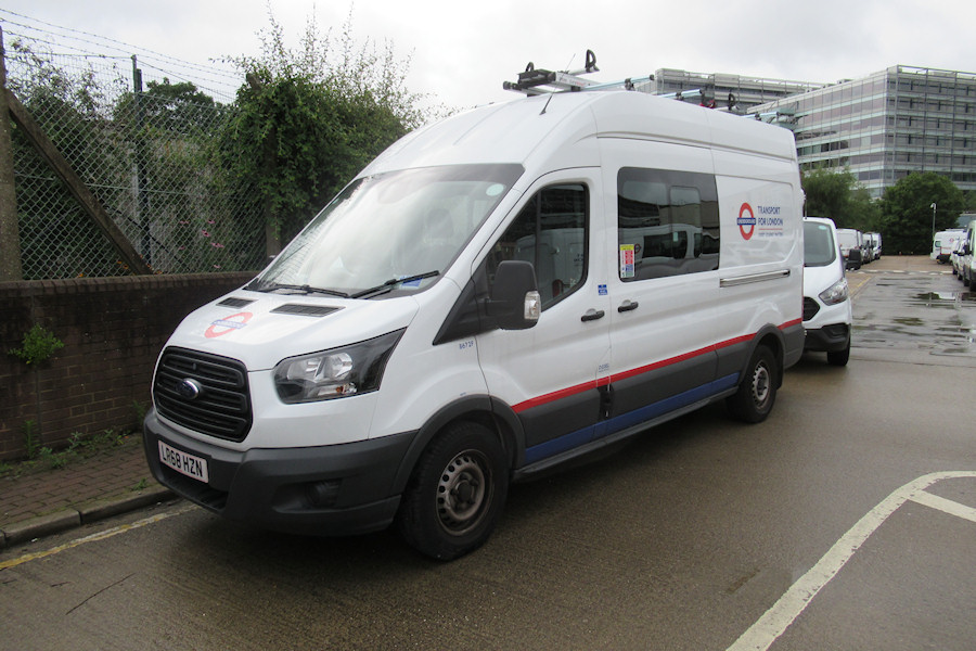| Details: For some reason I had it in my head that high-roof Mk8 Ford Transits cannot have roof-racks. Well, this photo proves otherwise. It has made me notice though that the racks on Mk8s are actually fitted to the roof, rather than to a curb-rail on the side as on earlier Transit models. 8672F is a long-wheelbase crew van new in October 2018 and seen in Acton Works (the van yard is in the background) on 20th July 2019. | ||||