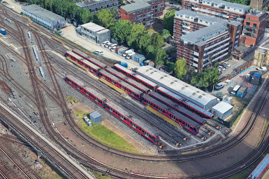 | Details: Another Google image of Poplar DLR depot, this being the east end where the tracks curve round to follow the Stratford branch. This view is looking in the opposite direction to the previous photo, and the same white van appears in the top right corner of each. The track layout here reminds me of a Hornby train set! Note that another ten or so service vehicles can be seen. The SV fleet appears to have been renewed in 2018, and most carry fleetnumbers. The highest reported number is 028, so that might be the size of the fleet. | |||