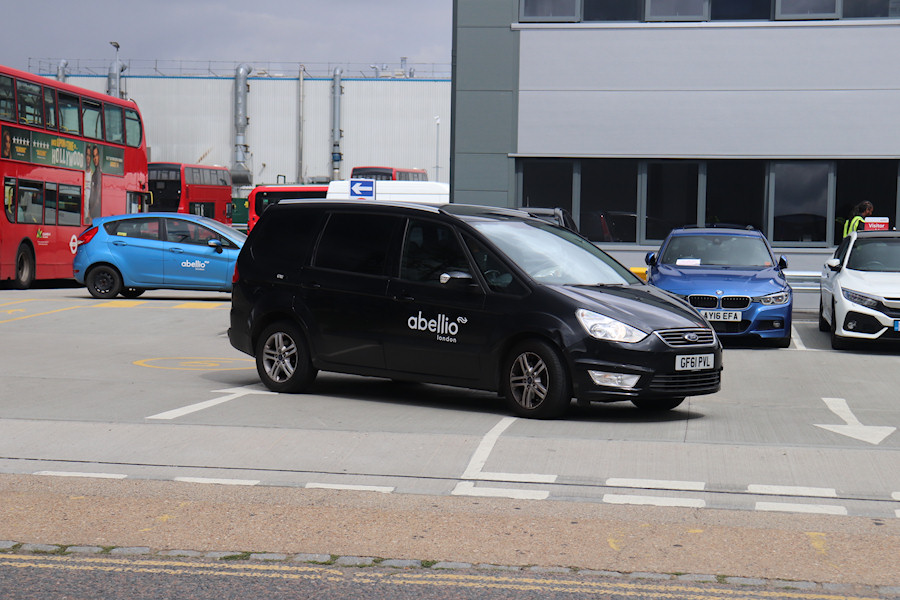 | Details: Derek also visited the new Abellio garage in Southall, on 12th August 2019. His photo, taken at the 'front', shows a rather sleek looking Ford Galaxy car in black livery with tinted windows. Initially operated without markings from Beddington Cross garage, it now has Abellio names and a small fleetnumber near the fuel filler. Also visible is a blue Ford Fiesta, believed to be EN60DPX. | ||||