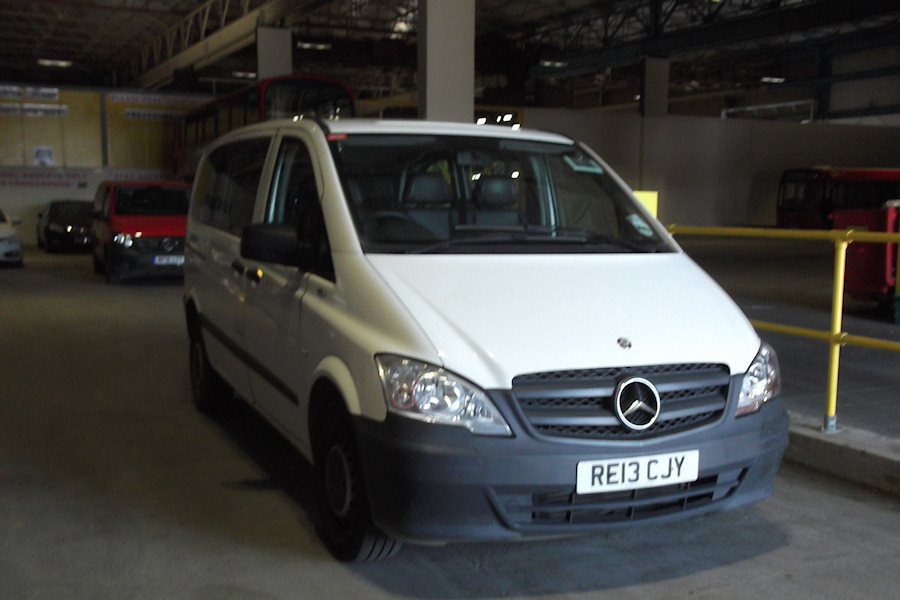 | Details: Last month I published an aerial view of Morden Wharf bus garage in North Greenwich. London Spotter decided to pay a visit on 24th August 2019, partly to investigate the Highways Alliance yard nearby (more on that next time around), but also to take a look at the garage itself. It wasn't clear from the google view whether buses could actually fit inside the building, but this photo provides definitive proof. To the fore is Mercedes-Benz Vito minibus RE13CJY in seemingly unmarked white. This vehicle has been around a bit. New to Metrobus in 2013 as their 8069, it worked from Croydon garage for about a year then was shipped across to the former First garage at Northumberland Park. Then in mid-2017 it moved again, to the newly-opened Morden Wharf. Go-Ahead London has taken delivery of lots of new Vitos over the past year, including RF19UZT parked in the background here. | ||||