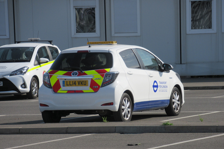 | Details: After my 'discovery' of a Highways Alliance depot near Morden Wharf garage last month, two correspondents paid the location a visit. The buildings on the site are large, though of the 'Portacabin' type, while there are over a hundred car parking spaces marked out in front. However, at the times of the Google photographs, and the two visits mentioned above, only a half-dozen vehicles were present. About half of the vehicles were Toyota Yaris cars in London Highways Alliance livery, as seen in the background of this photo taken on 31st August 2019. Nearer the camera is another Yaris, LL14VKU being one of five new to TfL in 2014. VKU, along with the others, had been regularly reported at the main TfL Streets base at Chancel Street in Southwark. It could be that it has recently transferred here to replace the ex-LBSL VW Caddy van seen in the aerial photographs. By the way, I decided to name this location 'North Greenwich Highways Alliance', as it is slightly separate from Morden Wharf itself. It also includes another yard at the south end, which is where the larger vehicles (trucks, vans, cherry pickers and gritters) are kept. | ||||
