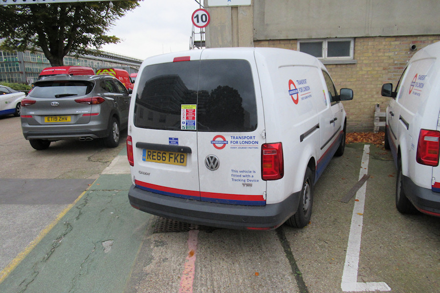 | Details: The Volkswagen Caddy Maxi van (and crew van) is now a very common type in the central fleet, although the vast majority are diesel-powered. 8265VW, seen at Acton Works on 26th October 2019, is one of three petrol-engined vans new in winter 2016/2017. It has been noted at various locations (including Templar House in Holborn), usually at night. Parked on the right is another Caddy Maxi van, diesel 8686VW being newer but not reported since it entered service in September 2018. On the left is the area used to park the LBSL vans allocated here. | ||||