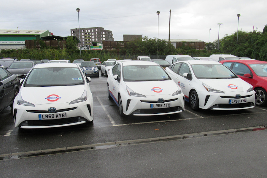 | Details: Several of the nine-plus Toyota Prius cars delivered in mid-September 2019 were still at Acton Works towards the end of the month. Seen in the car park on the 26th were 8892T, 8889T and 8886T. | ||||||