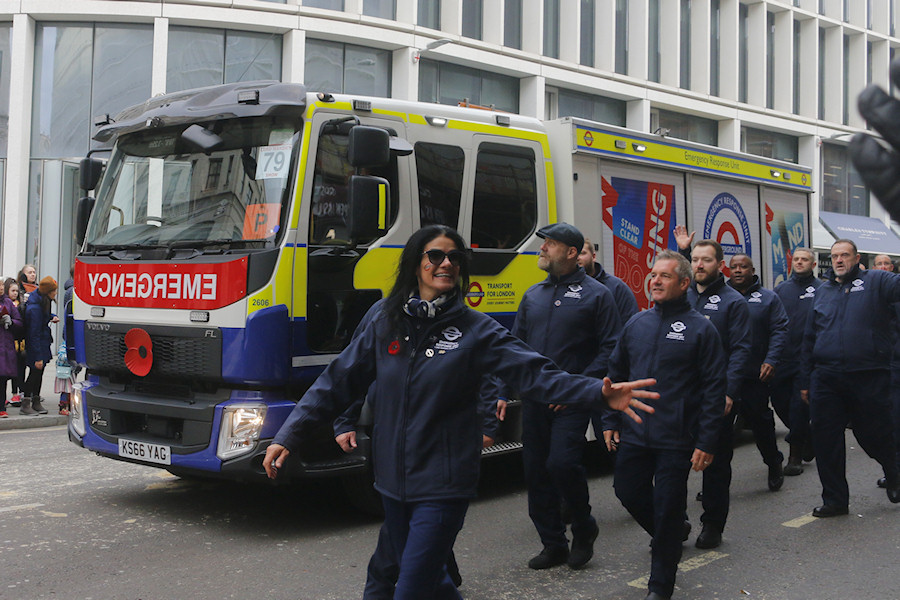 | Details: Ray noticed a couple of the ERU's Volvo rescue tenders having 'adverts' applied at Acton Works in early November, and this photo seems to provide an explanation. Taking part in the Lord Mayor's Show on the 9th was tender 2606, decorated with posters on the roller shutters and a huge poppy on the front grille. | |||