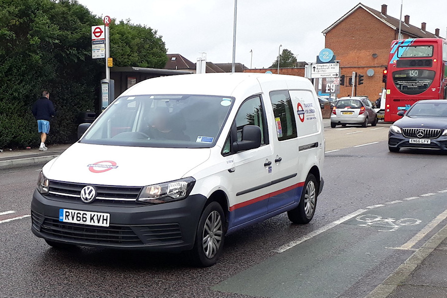 | Details: Seen on Fencepiece Road in Hainault on 16th October 2019 was Volkswagen Caddy Maxi crew van 8198VW, allocated to the nearby LUL depot. This model is becoming a 'standard' feature of the central fleet, with over a hundred in current stock. The bus in the background still has the colour-coded route branding, applied as a trial in 2017 to all the routes serving Barkingside. Many of the buses have since lost the branding or been replaced, although a second trial was launched in Hayes (west London) in 2018. | |||
