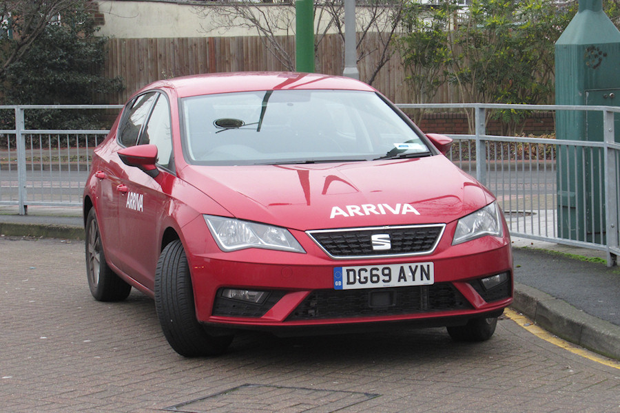 | Details: Two red Seat Leon hatchback cars were added to the Dartford allocation around the turn of 2019/2020 and thankfully both were given Arriva fleetnames. The Leon model is similar to (but slightly larger than) the Seat Ibiza, two of which (in an unusual gold livery) were also delivered to Dartford earlier in 2019. DG69AYN was seen at the bus stand on Arnsberg Way in Bexleyheath on the first day of 2020. | |||