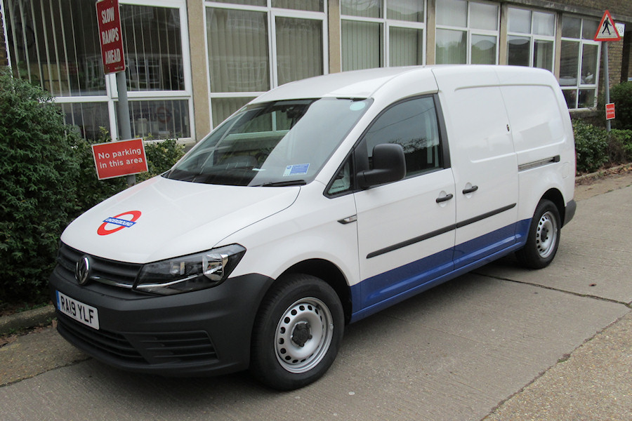 | Details: It's deja-vu all over again! Regular visitors may recall that in December 2019 I published a photo of an LUL VW Caddy Maxi at Acton that appeared to have been partly de-liveried. Well, here is another one, with subtle differences (it is a van rather than a crew van and the roundel on the bonnet is still in situ). An accident again appears to be the cause, this van having been seen at Acton in November 2019 with damage to the nearside. 8875VW is the last in a batch of five Volkswagen Caddy Maxi vans new in August 2019. Thanks to our correspondents' regular visits to Bedfont and Acton, I have photos of all five vans, but it is notable that two of them (8872VW and 8874VW) have not been seen since entering service. It is highly likely that these two are in LUL white/blue/red, as per the other three, but I will not update the database until this is visually confirmed. | ||||
