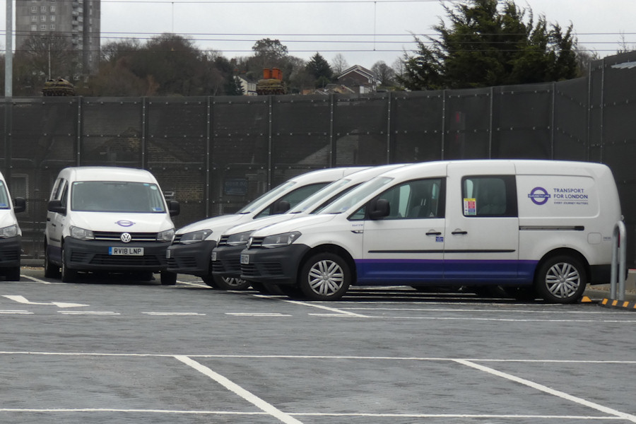 | Details: The Elizabeth Line has a fleet of nine Volkswagen Caddy Maxi crew vans, and eight of them were visible at Plumstead Depot on 23rd February 2020. This view shows (left to right) part of 8636VW, 8637VW, 8642VW, 8640VW and 8641VW. Plumstead does seem to be the main depot for the service vehicle fleet, with almost all examples having been seen there at one time or other. As such, I have now allocated the bulk of the fleet to PDD. When (if) the Elizabeth Line service eventually starts, the allocations may be reviewed. | |||||