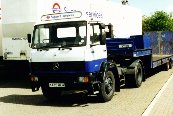 | Details: Mercedes-Benz 1520 Articulated unit 2525M (K479RLA) was new in 1993 and is seen here coupled to step-frame trailer YT29. Alongside is trailer CMT53, which was originally used for uniform issue, replacing the last Ford D-series trucks in the fleet. Note that both trailers display their fleet numbers by use of registration plates. | ||||||