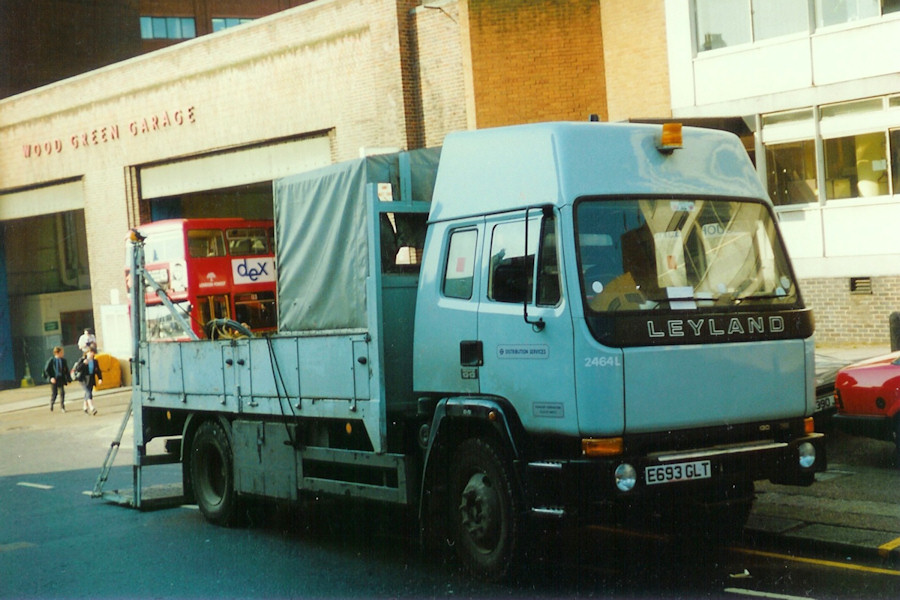 | Details: So, I am starting a photographic review of the year 2000 with a photo taken eleven years earlier! 2464L is worth illustrating though as it was the last Leyland vehicle in the central fleet by 2000, and was itself withdrawn towards the end of the year. New in 1988, 2464L was the last of thirteen lorries to feature the Ogle-designed T45 cab. These comprised two Cruiser artic tractors, six Freighter recovery trucks and five Freighter dropside lorries. Among all of these, 2464L was unique in featuring an extended (in both length and height) cab of the type usually used to provide sleeping space for long distance drivers. It was also unique in having a tail-lift, and it was quite a tail-lift, with a very large, fold-down platform. This feature was specified for its use by the lifts and escalators division based at Griffith House, although official fleetlists gave 2464L's allocation as being Acton Works. The large tail-lift can also be seen on earlier 1514F and 2276B, both of which also had the tilt-cover as featured on 2464L. Later lorries such as 2535F, 2579, 2585I and the current RK14ETT and RK14ETU dispensed with the tilt but continued the use of large platform tail-lifts. At the time of 2464L's delivery, grey livery was still standard for lorries. 2464L was unusual for pairing this with white fleetnumbers, other lettering being in rounded boxes, as featured for a few years in the late 1980s. 2464L was repainted in the post-1990 LUL livery of white and blue sometime before 1998. In this photo, taken on 8th May 1989, the lorry was parked outside Wood Green Bus Garage with its tail-lift lowered. This location is about a hundred yards from the tube station so it is possible the lorry was being used for other purposes, perhaps delivering to the bus garage, or the offices on nearby Watsons Road. Wood Green garage was in Leaside district and operated mainly MCW Metrobuses for many years. Interestingly, the only bus visible is a London Forest district Leyland Titan from Walthamstow, working on route 123. | ||||