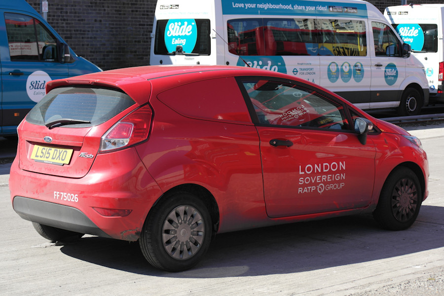 | Details: On 5th April 2020, Michael took his 'permitted exercise' by walking to RATP-Dev's Twickenham garage. Among various vehicles parked up were most of the 'Slide Ealing' MAN minibuses, which come in two livery variations as seen here. This demand responsive service, along with the similar one in Sutton, was suspended when the COVID-19 lockdown was introduced, as it was deemed impossible to provide 2 metres separation between passengers in the rather compact vehicles. Both services were technically experimental and it remains to be seen whether they are eventually reintroduced. In terms of the service vehicles, none of the new Dacia cars were present, all presumably having been delivered to their new home garages. One of the replaced vehicles was present, this being Ford Fiesta van LS15DXO, latterly at Edgware Garage. New as fleetnumber FF26 in April 2015, the renumbering exercise of 2016 saw this become FF75026, and this van was one of only a few to actually carry its new number. | ||||