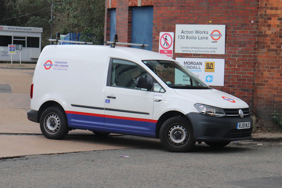 | Details: The Volkswagen Caddy van is now one of the most common types in the central fleet, with about 160 examples at present. However, the majority are of the longer Caddy Maxi model, and there are just a dozen of the shorter variant. Six were delivered in April 2019, five of which got consecutive fleetnumbers 8864VW to 8868VW. That is not to say that they are allocated to the same user though. 8864/6/7/8VW seem to be night-time vehicles whose base is not known. 8865VW on the other hand has been seen in daylight at various locations around Acton, including the works, Frank Pick House and the small car park beside Acton Town station. On 18th February 2020 it was seen leaving the works. | ||||
