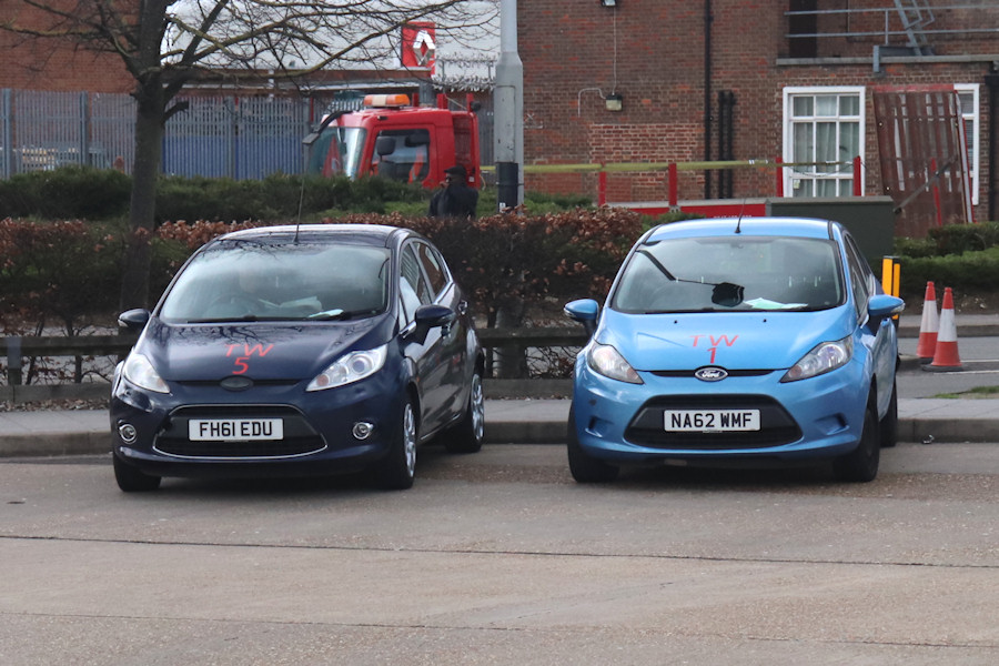 | Details: Both of these cars have featured on LTSV before, but this photo has been included to show the new 'local' fleetnumbers applied to crew ferry vehicles based at Abellio's Fulwell/Twickenham Garage. This garage was formerly part of London Transport's Fulwell trolleybus depot and when it was reactivated by TGM in 2000 it was given the official allocation code of TF. However, Abellio refer to it as TW, and this code prefixes the new fleetnumbers. Second-hand Ford Fiestas are Abellio's first choice for crew ferry uses, although it is interesting to note that (as far as we know) no more have been added since 2017. Photographed at Hatton Cross bus station on 18th February 2020. | |||||