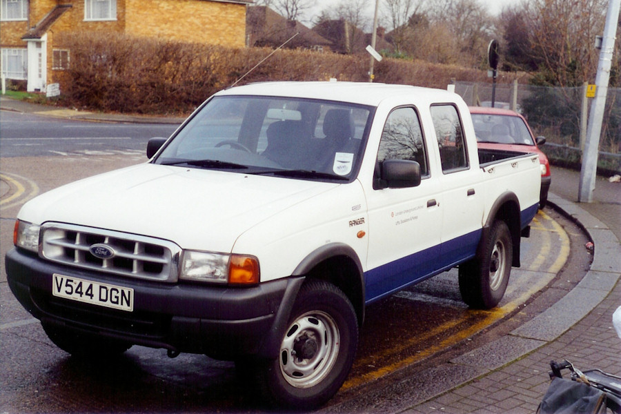 | Details: A small number of four-wheel-drive vehicles have been used as service vehicles over the years, perhaps for roles where some off-roading might be required to access work sites. Such vehicles were Land Rovers for many years, but a couple of other makes have also been tried. The Ford Ranger has been a small but fairly continuous part of the central fleet since the arrival of the first two in September 1999. This pair was numbered 4986F and 4987F, the latter having a hard-top cover to the rear. Almost five months later they were joined by a third, numbered 4985F and registered in the same series. The reason for the delay to this vehicle is not known, but all three were allocated to the Lifts, Escalators and Pumps section based at Edgware Road Station (for some reason this department was permitted capitalisation in the cab-side lettering!). 4985F was seen parked outside Stanmore Station on the 1st of December 2000. Stanmore has neither lifts nor escalators so the vehicle must presumably have been attending to pumps! By the way, this generation of Ford Ranger was actually based on the Mazda B-series truck and differed from the Ranger models sold in America. Later generations were internationally standardised. | ||||