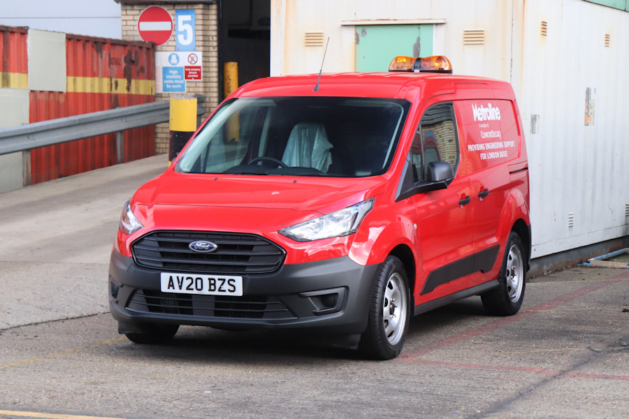 | Details: Derek visited Metroline's CELF works in Perivale on 18th August 2020, and found this new Ford Transit Connect Mk2 van parked outside. AV20BZS has the facelifted front end design and had already gained a light-bar and full set of lettering. | ||||