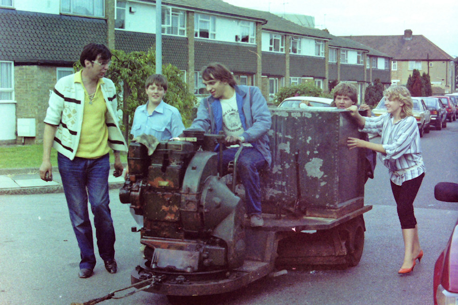 | Details: I'm going to end today's batch of photos with something a bit unusual. Few people took any notice of the garage sweepers owned by London Transport, and it might be fair to say that they were a minority interest within a minority interest (service vehicles) within a minority interest (the LT fleet). However, they were liked by a couple of people who took notes of ones they found. The chap in this photo went one step further. He worked at Edmonton Garage and, when that was closed in February 1986 (and he was transferred to Stamford Hill), he had towed Edmonton's sweeper home and put it in his garage! Phil met the man at a rally later in the year and was invited to come and see the sweeper at its new home in Ponders End. After some tinkering and a few helpers to push, the machine started up. The only lettering visible in this view is a letter N on the nearside of the water tank, but the vehicle is apparently L20, a Lister new in the 1960s and previously allocated to Enfield. Whether it still survives is not known. | |||