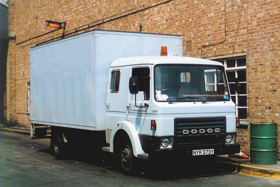 | Details: Of the 27 Dodge Commando lorries bought by London Transport between 1981 and 1985, the majority (20) were dropsides. The remainder comprised four box lorries and three dustcarts. Three of the box trucks had crew-cabs and tail-lifts, though the first of these (2306D) differed in having the earlier front panel design and also ladder hatches in the front of the box bodywork. 2379D was new in April 1983 and was photographed at Wandsworth Garage (outside the set-back western entrance) a few years later. The front wheelarches are grey, while a photo taken in 1988 showed that they had been repainted black (and a Renault diamond had been added to the front grille). As will be shown next, 2379D was one of six LT Commando lorries to end up with a firm in Willesden. | ||||