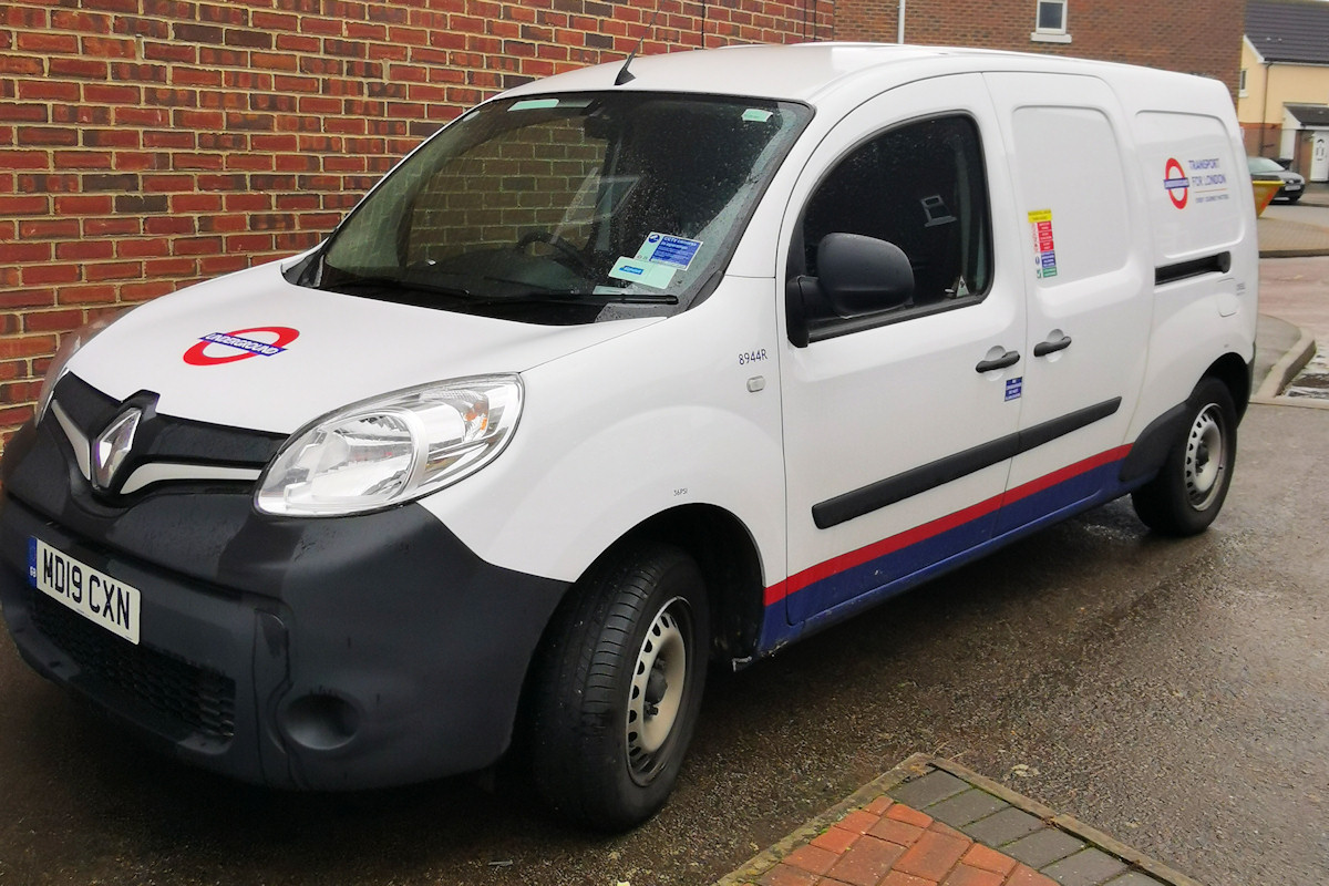 | Details: LUL vans in Essex part 4. A very tight shot of Renault Kangoo Maxi van 8944R parked in Harlow on 14th November 2020. This is another night-time van, which we reckon works out of Lillie Bridge Depot. | |||