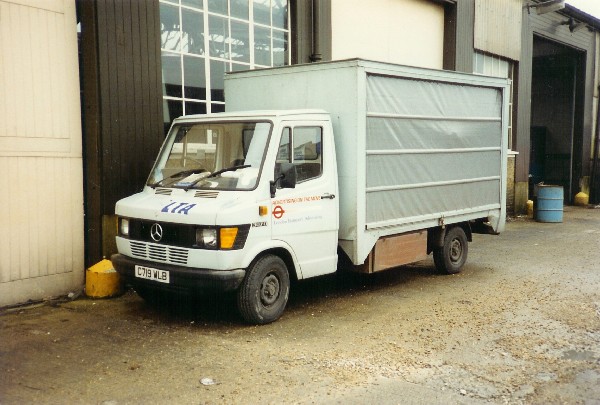 | Details: The second batch of Mercedes 307D trucks bought in 1986 featured curtainsided bodywork and were allocated to the publicity department, latterly renamed London Transport Advertising. This view of 2454M (C719WLB) at Potters Bar Garage on 3rd April 1987 shows the unusual configuration of the canvas sides, which were presumably mounted on a top roller. Most of this batch were withdrawn in 1993. | ||||