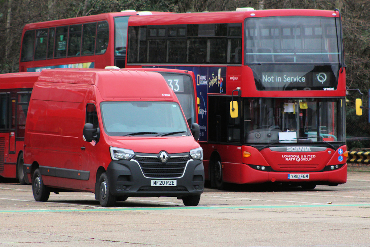 | Details: As predicted, one of the thirteen Renault Master vans acquired by RATP in mid-2020 has been left in unmarked red, presumably due to it being allocated to admin duties, or as a cover spare for the twelve vans used by garage engineers. On Boxing Day 2020 it was found parked at the back of Hounslow Heath Garage, showing that it had at least gained its R70036 fleetnumber. | ||||