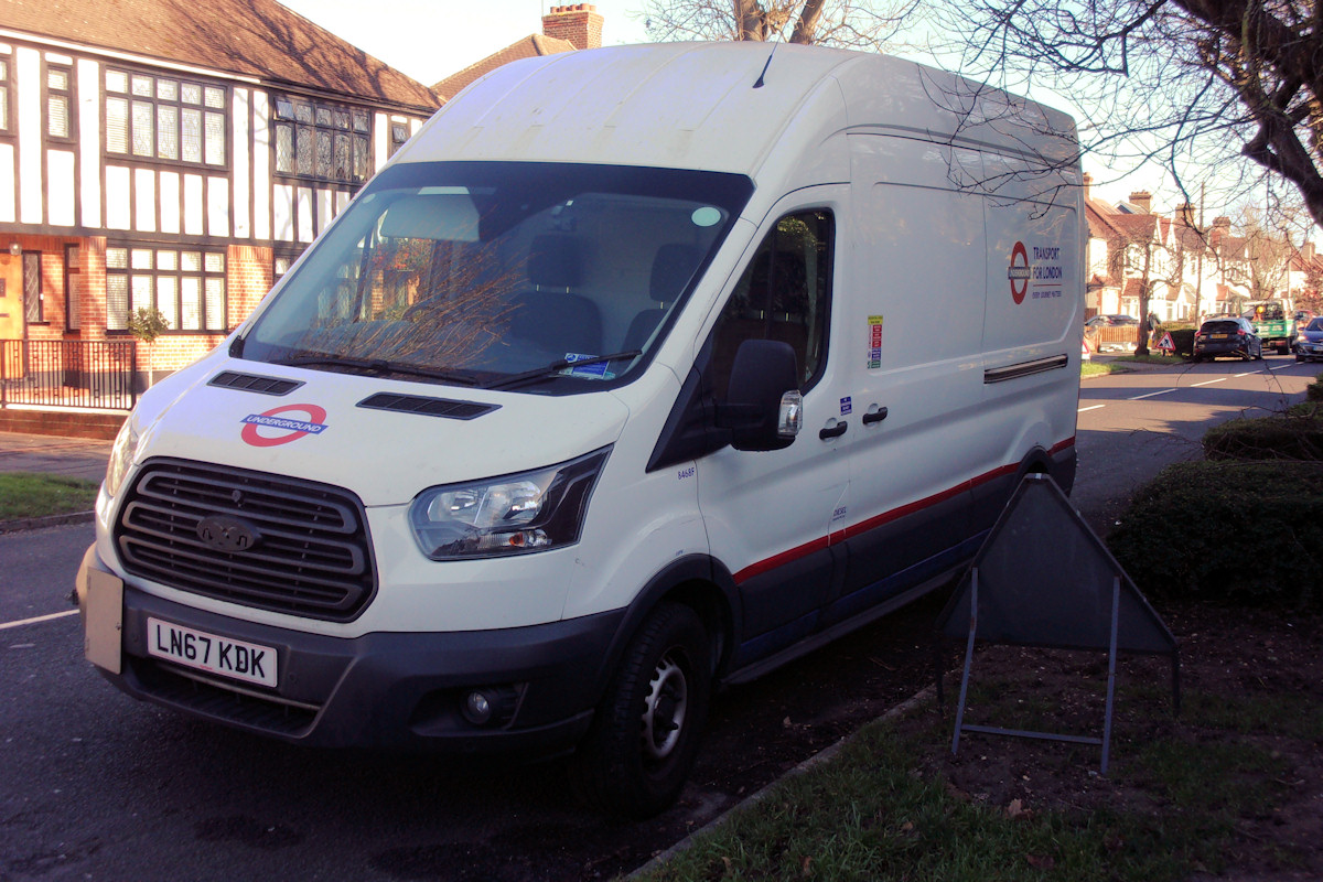 | Details: 8468F is a fairly standard high-roof Mk8 Ford Transit van, but it is yet another nocturnal vehicle, normally only venturing out of its Stratford Market base under cover of darkness. The first photo seen of this van was this one taken among the mock-Tudor suburbia of Corbets Tey (south of Upminster) on 22nd January 2021. | |||