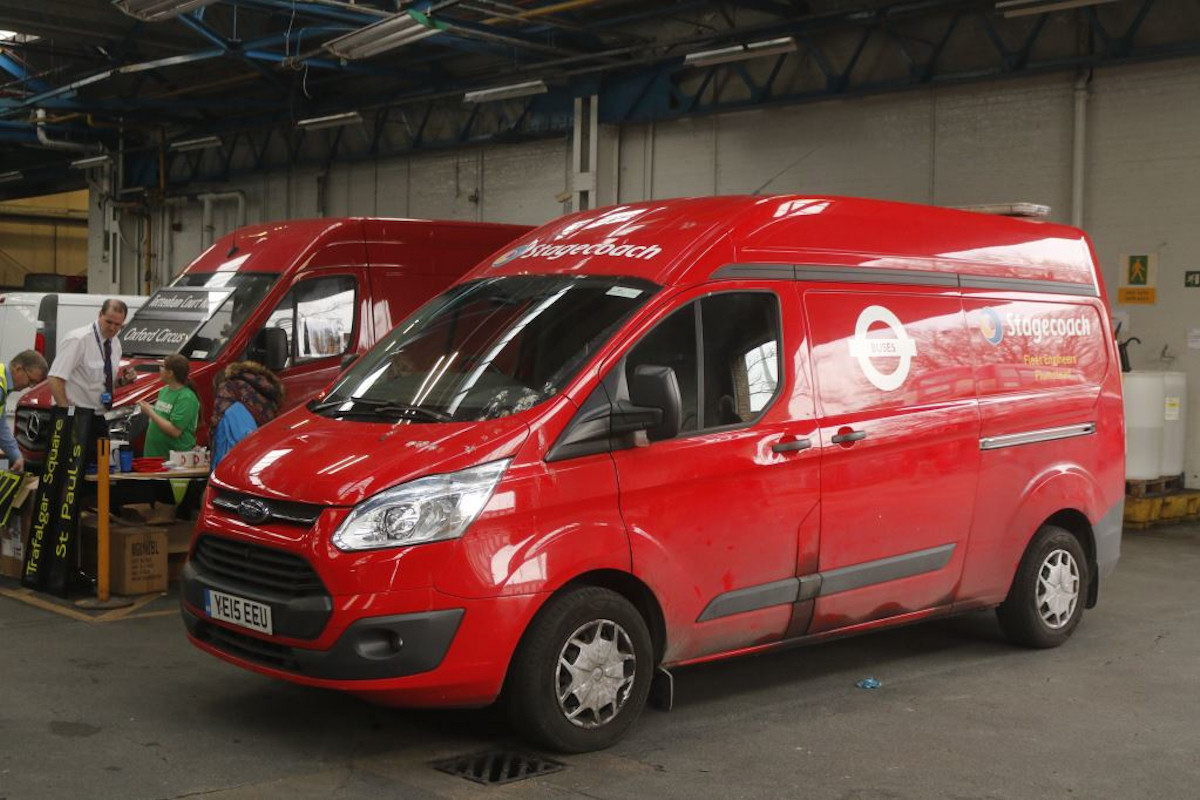| Details: Stuart Hicks recently sent in two photos of Stagecoach Ford Transit Custom vans seen at Barking Garage during the RT event on 30th March 2019. I initially thought that they were both of the same vehicle but it turns out that Plumstead's YE15EEU also paid a visit during the day. It was seen parked inside the garage, with Stagecoach's anonymous Mercedes Sprinter van OV65DSY visible in the background. The other photo was of resident MC16YUK and was very similar to my own photo. | ||||