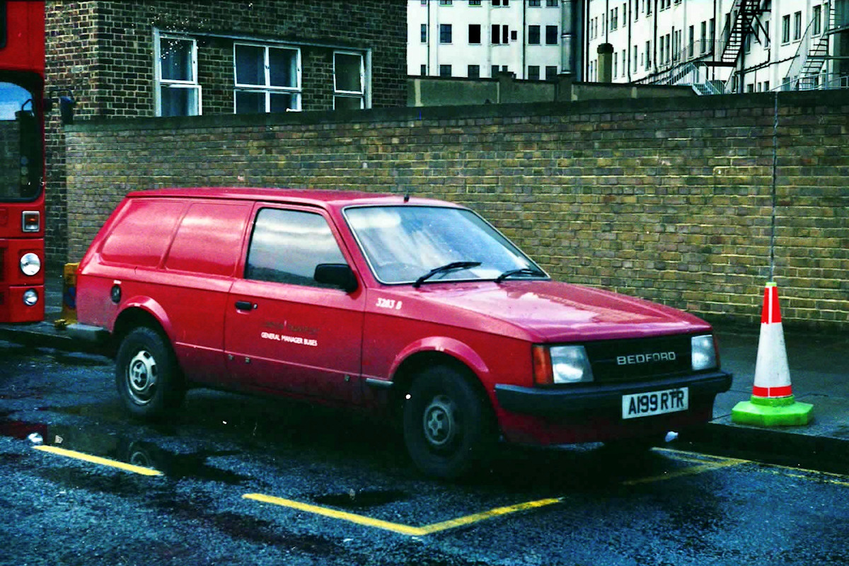 | Details: The advent of leased service vehicles in the early 1980s saw the appearance of many non-London registration series. Bedford Astra van 3283B was supplied by Wincanton and had a Southampton 'TR' registration. Assigned to the Operations Manager (Buses) it was primarily based at Victoria Garage. Curiously it did not have the roof-mounted roundel normally carried by such vehicles, even though Chevette estate 3074B (which it replaced) and Astra van 3478B (which replaced it) did. It was photographed on Allsop Place (Baker Street) in April 1986. | ||||