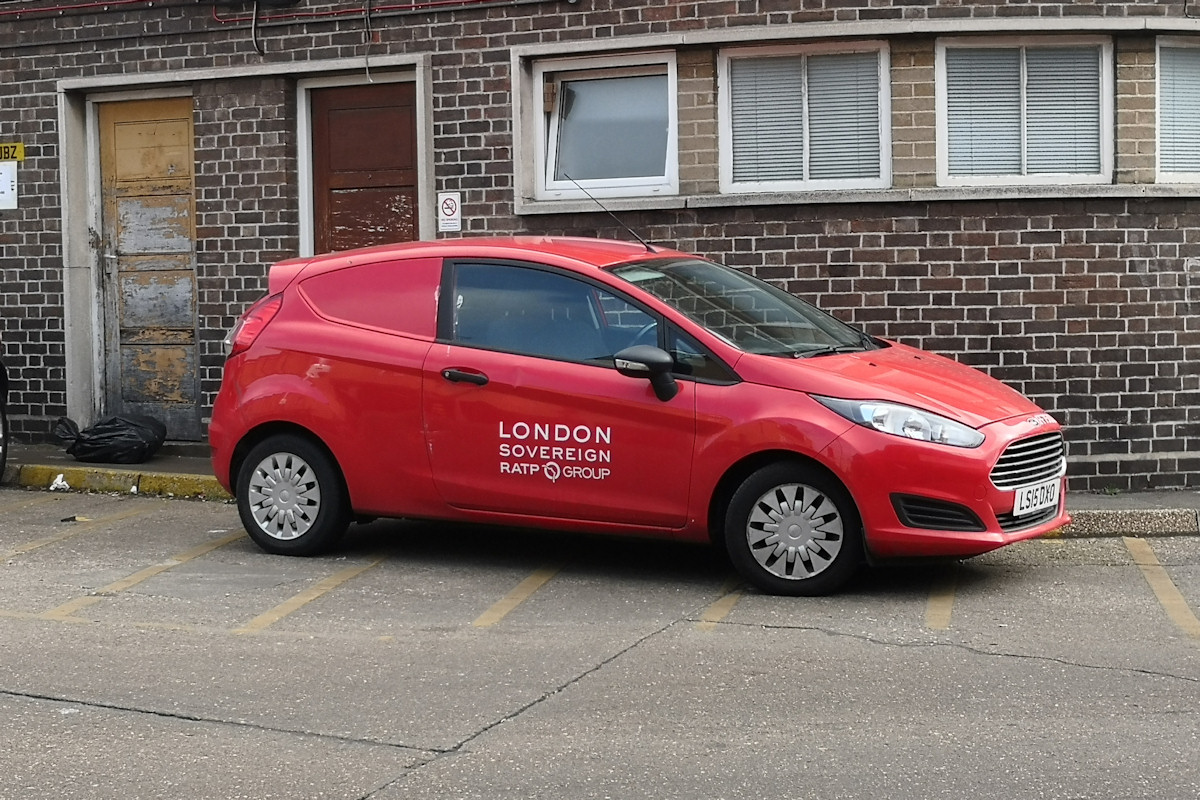 | Details: Here is another of the London Sovereign Ford Fiesta vans that we assumed had been withdrawn. LS15DXO was new as FF26, changing in 2016 to FF75026, and was based at Edgware Garage. Following the delivery of new Dacia Sandero cars in early 2020, LS15DXO was moved to Twickenham (ex-NSL) Garage for storage. However, in early 2021 it resurfaced at Hounslow Garage for a few weeks, being photographed there on 1st March. Just visible is the new fleetnumber, this being applied on the front and back while the original fleetnumbers were on the sides. Note also that the parking allocation still refers to EO12UBZ, a similar Ford Fiesta van that was withdrawn in early 2020. | ||||