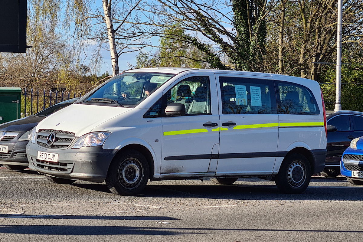 | Details: This Mercedes Vito minibus was new to the Metrobus fleet in 2013, being numbered 8069 and allocated to Beddington Lane. About a year later it moved to Northumberland Park as part of a reshuffling of the Go-Ahead London crew ferry fleet. Three years later it moved again to Morden Wharf, by which time it had lost its Metrobus fleetnames and number. Then in late 2019 it was reported to be at Merton, which was odd since this garage had never previously had an allocation of crew ferry vehicles. Licensing data suggested that it had been sold in early 2020, although it now appears that this was incorrect or perhaps reversed. Neal found it passing near Waddon Station on 5th April 2021. Still unmarked, it had gained yellow side stripes, while the notices in the window show that it was still in crew ferry use. The notices state that face coverings must be worn, that ''this ferry vehicle'' can only carry 2 passengers, and that passengers must sit in the designated seats! I am not sure if this minibus is still working from Merton, though it seems more likely that it has returned to its original home of Croydon (Beddington Lane). | |||