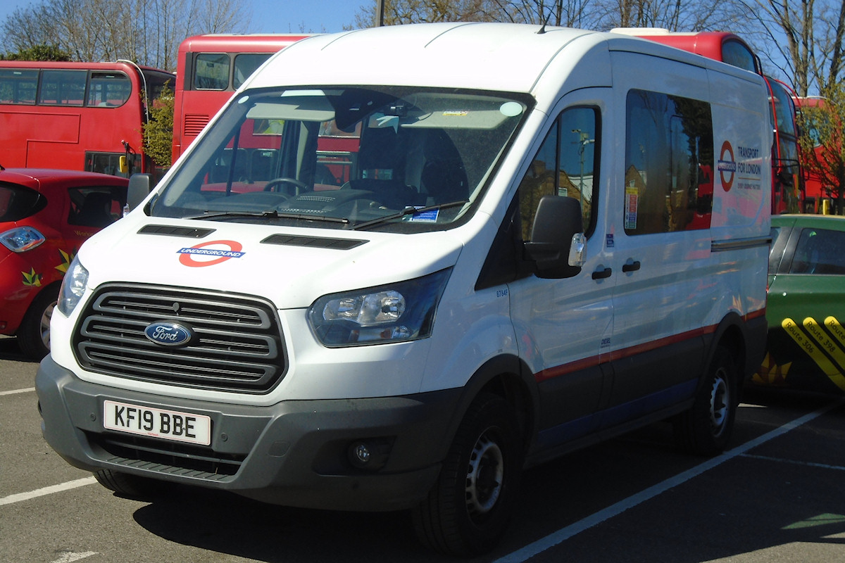 | Details: Another rarely-reported vehicle found at Loughton Station on 17th April 2021 was Ford Transit crew van 8784F, new in July 2019. As evidenced by the buses in the background, the Central Line service had been suspended and bus replacement services were operating. Sullivan Buses is often involved in such work, and two of their Renault Zoe electric cars can also be seen. | |||
