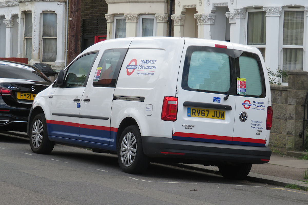 | Details: Volkswagen Caddy Maxi crew van 8577VW seems to be allocated to the Victoria line, with sightings mainly at Northumberland Park Depot and Stockwell Station (the latter at night). It has also been noted in Catford, this presumably being where its regular driver lives. Andrew photographed it on Ringstead Road on 12th May 2021. The badging on the rear of these vans seems to vary, with many just showing 'Caddy' and 'TDI'. This example has the additional 'Maxi' on the left, and also 'C20' under the TDI on the right. | |||