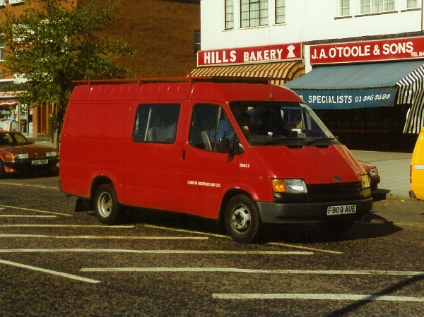 | Details: Throughout this site I have called this type of van, with a second row of seats ahead of the cargo area, Crew Vans. Ford Transit Crew Vans often had a window in the sliding door on the nearside, and some, like 3663F (F809AUE) photographed at Northolt on 9th April 1990, also featured an offside window. This reveals the additional seats and the mesh screen separating the rear compartment. 3663F also had a roof-rack of sorts and was reported as being allocated to the signals department based at Earls Court. | |||