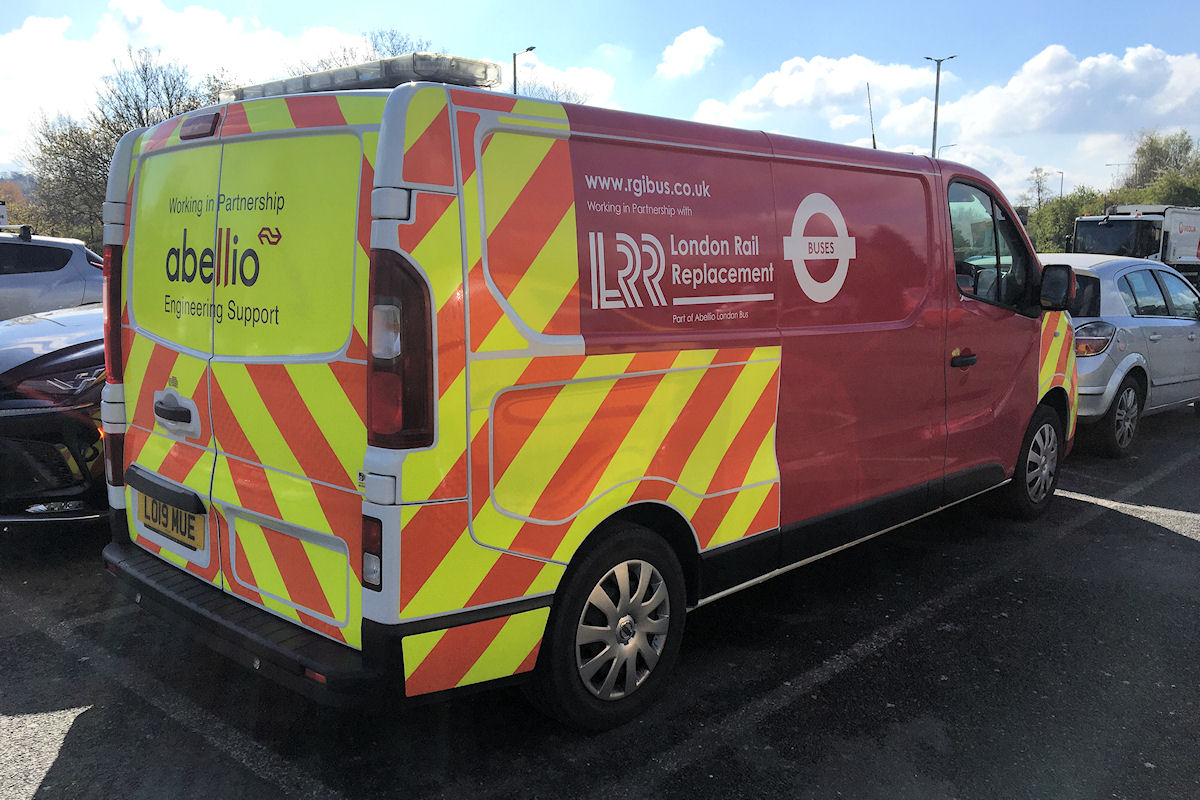 | Details: Now it is Nissan van LO19MUE's turn for a second appearance on LTSV, though in this case there are a couple of reasons for the repeat. First seen in August 2019, it had lettering that suggested it was run by Abellio. However, it transpired that it was actually operated by a contractor, which explained the original 'Working in Partnership' lettering. It was photographed again on 29th April 2021 at the London Gateway Services (previously known as Scratchwood) on the M1, by which time its lettering had been amended. A large Buses roundel now features on the mid-panel, while the rear panel has a web address for RGI Bus and Coach Refurbishment, a company set up in Southam (Warwickshire) in 2016 and specialising in bus refurbishment and re-selling. Below this, the fleetname has been changed from Abellio to 'London Rail Replacement, Part of Abellio London Bus', together with an LRR logo, though the lettering on the rear appears to be as before. I have not heard of LRR before but, being part of Abellio, it is presumably not responsible for all railway replacement services in London. The livery around the front of the van had been modified, with yellow now applied to the previously red parts below the grille. However, I chose to use this rear view because it shows that the base colour of the van is actually white. This can also be seen in the gaps between the vinyl panels around the front wheelarches, while looking again at the earlier photo it appears as though the roof might also be white. Presumably most of the red parts are actually vinyls. One thing that remains unknown is where this van is based. Photos on the RGI website suggest that it does sometimes visit the Warwickshire base. Perhaps it only comes down to London at weekends (when most rail replacement services run), in which case do we need to add a new location for Southam?? | |||