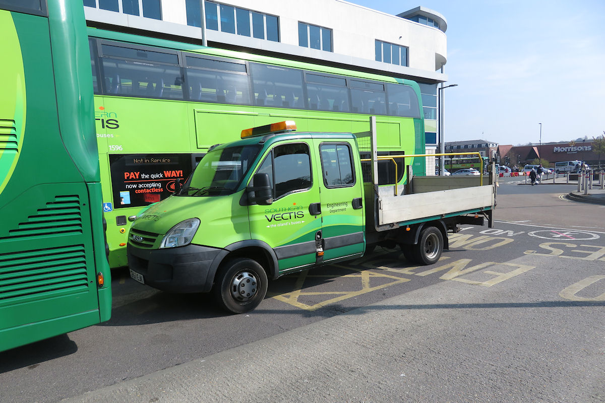 | Details: The last photo today is one of our occasional forays into the scene beyond London. Photographed in Newport Bus Station on the Isle of Wight on 21st April 2021 was Iveco Daily truck EY57EJK of Southern Vectis. This is one of relatively few bus companies not to have seen a change of name in the deregulation and privatisation era, although it is now owned by the Go-Ahead group. Ironically its name derives from an earlier period of corporate ownership. Originally known as the Vectis Bus Company (Vectis being the Roman name for the Island), it was bought by the Southern Railway in 1929 and renamed to Southern Vectis. The Iveco Daily type is notable for being a fairly common sight in the UK but being very rare as a service vehicle in London. Apart from a couple in the central fleet and a few with Sovereign Recovery, the only known example was a single van with SM Travel of Harlow. | ||