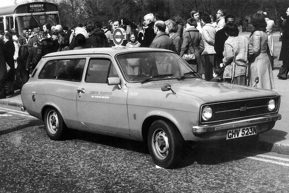 | Details: 1909F was another of the Ford Escort radio control cars delivered in 1975 in the orange/tangerine/tomato-soup version of red livery. The bodywork does appear slightly lighter in tone than the BL-class bus in the background. This photo was taken at Hyde Park on 10th April 1977, presumably at some event or other, judging by the crowds and indeed the presence of a BL! Unfortunately, none of the official LT documents from the time show an allocation for 1909F and it was withdrawn in August 1977 after just over two years' service. | |||