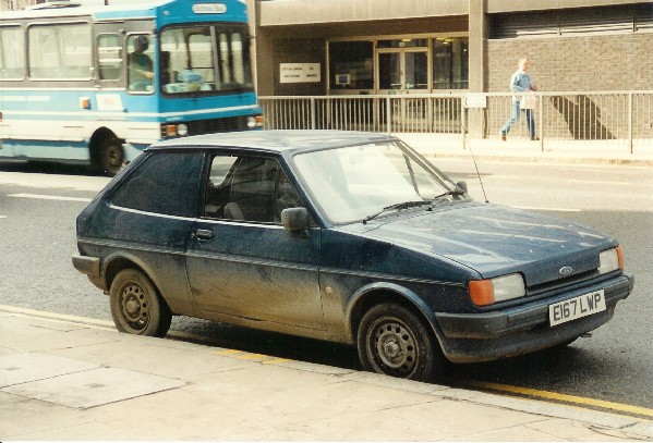 | Details: Knowing what is a service vehicle and what is not often takes some education and a bit of guesswork. This anonymous Ford Fiesta Van photographed at Tower Gateway on 15th March 1990 is in fact 3658F (E167LWP). The location and the livery give away the fact that this vehicle was allocated to the Docklands Light Railway, another clue being the mud! DLR vehicles were often rather spattered with dirt, probably as a result of the amount of construction lorries passing through their home area. Passing in the background is one of the large fleet of Wadham Stringer bodied midibuses operated by the Inner London Education Authority. | |||