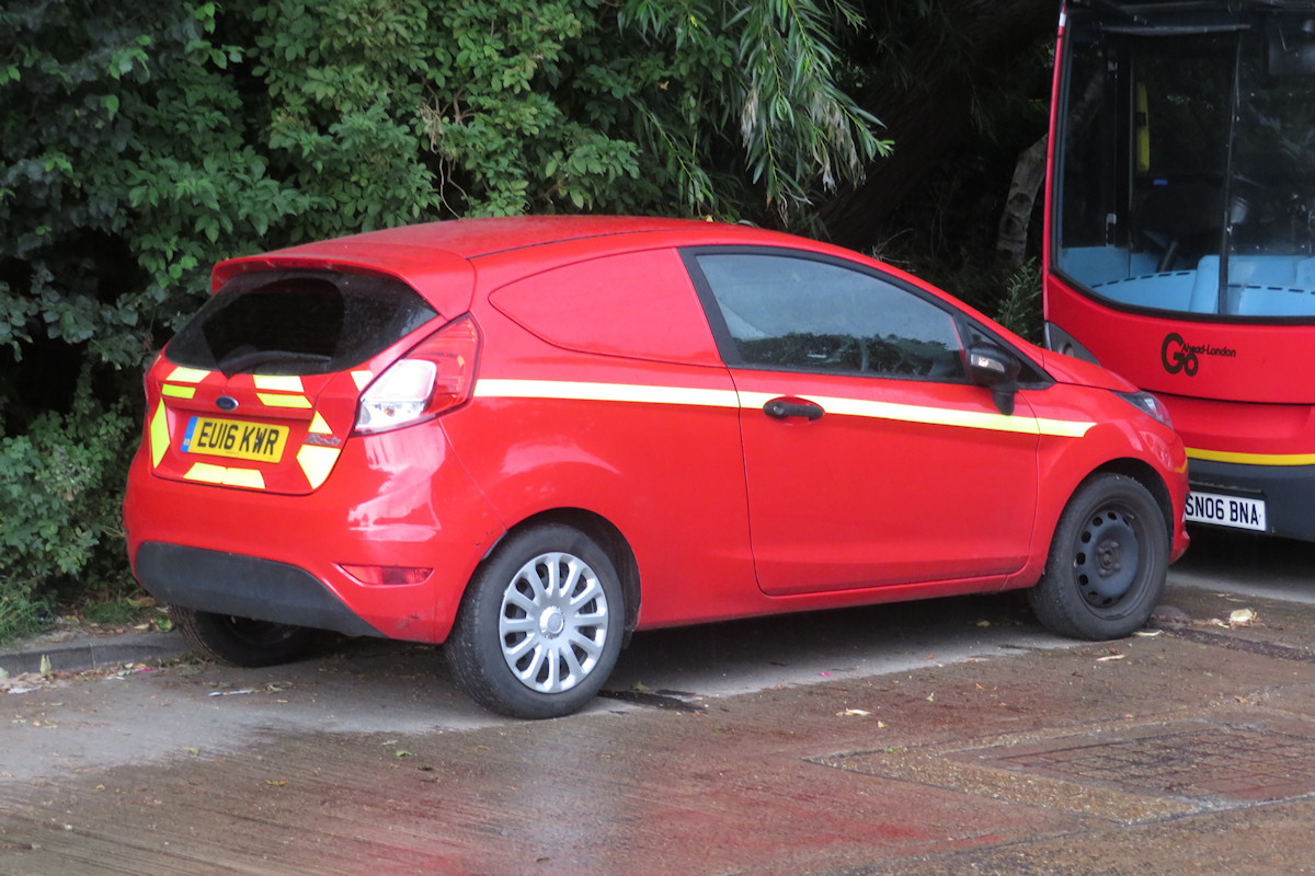 | Details: Andrew visited Go-Ahead's Plough Lane Garage on 25th July 2021 and found this Ford Fiesta van parked with one of the commercial department's E-class buses. Although unlettered, the livery and registration series of the van make me certain that this a Go-Ahead vehicle. The only puzzle is how come nobody else has seen it since it was new over 5 years ago. Perhaps it originally worked for one of the other Go-Ahead companies around the country. As has been seen, some of these do have red service vehicles, even when their buses carry other liveries. On the other hand, it could have been a second-hand acquisition that just happened to have a similar registration to existing Go-Ahead vehicles. This latter theory is supported by the fact that the vehicle had a new V5C (logbook) issued at the end of 2019, suggesting a change of ownership. Plough Lane only has a couple of service vehicles but one of them has the very similar registration of EU16KXR. | ||||