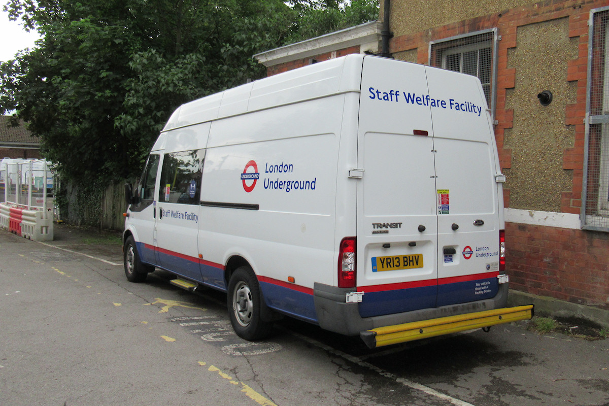 | Details: When James visited South Harrow Station on 19th June 2021, three Staff Welfare Facility vans were present. 7675F and YT70VHD were in the new, temporary compound (visible at the far left here), while 7674F was parked outside the old station building. Note that this parking space is marked as being for the IMCO. I don't know what this stands for but I suspect it might be 'Infrastructure Maintenance something'. | ||||