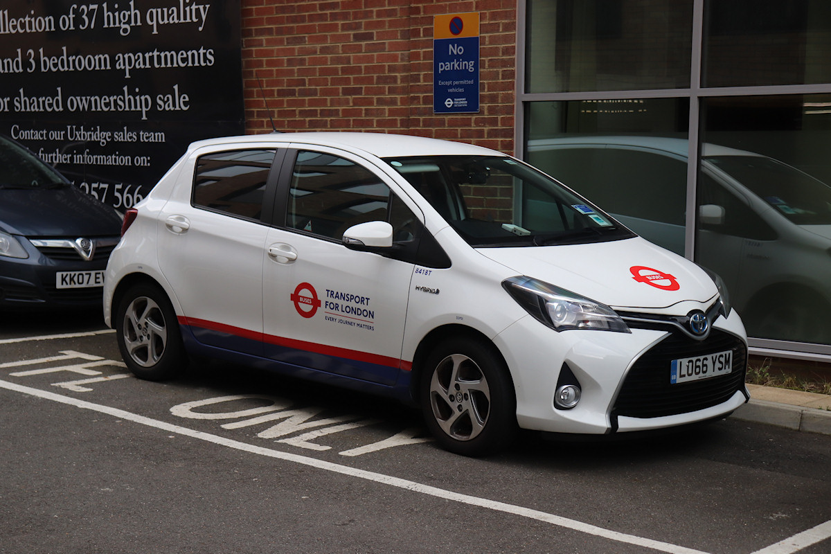 | Details: This Toyota Yaris car in LBSL white/blue/red livery has had rather a nomadic life. New in February 2017, it first went to Morden Station but within a few weeks had moved to Eltham. After a couple of years there it was sent to Southwark (Chancel Street) and later moved even further westwards to Uxbridge. It was photographed parked in the alley near the bus station/garage on 19th August 2021. The LBSL version of white/blue/red livery was only used for a brief period, appearing on five Toyota Yaris cars and three Vauxhall Movano minibuses used by Passenger Data. Since then, additions to the LBSL fleet (apart from the large batch of Incident Response Unit vans) have mainly been in TfL white/blue livery. | ||||