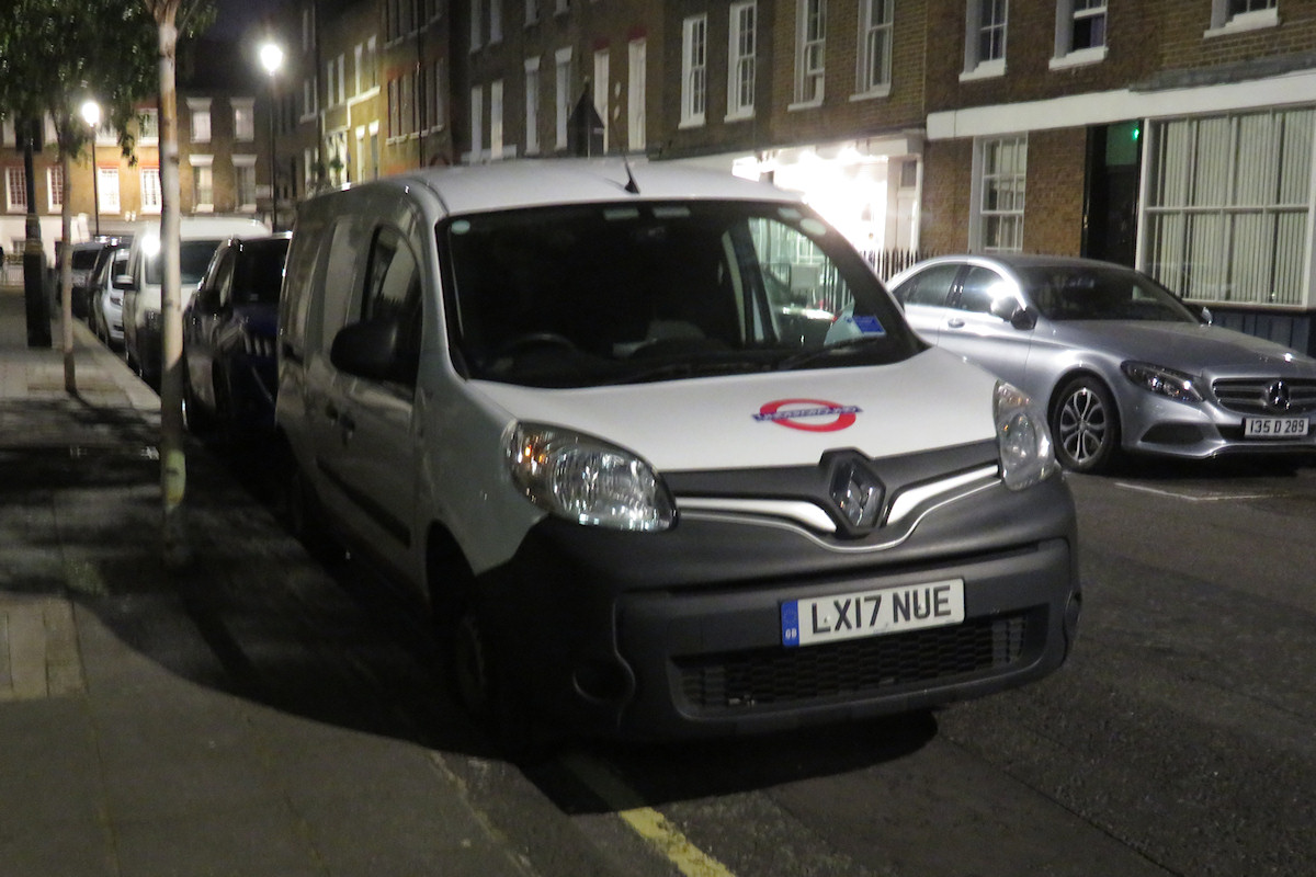 | Details: Andrew Lidinson has contributed a lot of photos recently, including some taken on night-time visits to Griffith House. These were hand-held (i.e. not using a tripod) and the quality is pretty good under the circumstances. This view of Renault Kangoo Maxi van 8361R parked on Harcourt Street on the night of 7th September 2021 used a one third of a second exposure. 8361R has been seen at various locations since it was delivered in March 2017, but it has mainly been a Griffith House vehicle. Note the diplomatic-plated Mercedes car on the right. | ||||